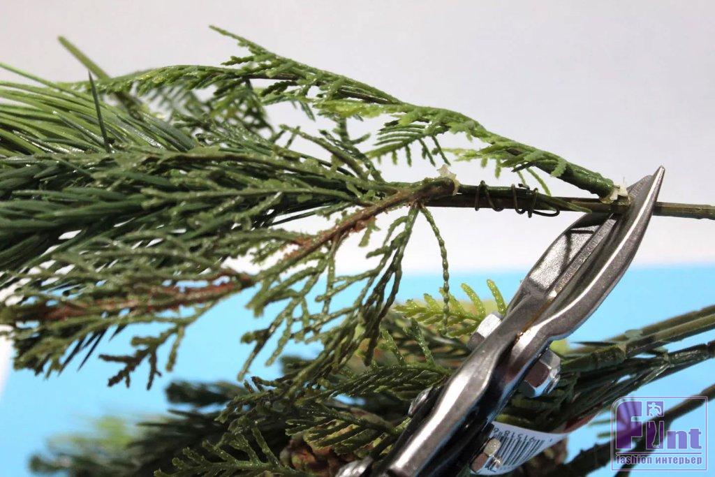 Используя кусачки, отрежьте кусочки от искусственных веточек хвои, чтобы по длине они не вылезали за края стаканов. Поместите веточки в стаканы, заправив их концы в стеклянные бусины, которые будут удерживать веточки на своих местах.