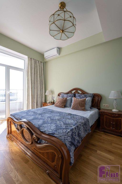«Всю мебель, кроме встроенной, мы заказывали в Москве. Многое из ИКЕА. Но ещё заказчица попросила вписать её любимый румынский спальный гарнитур, который имел не очень актуальный дизайн. Но мы подобрали приятный зелёный оттенок стен, и мебель „заиграла“», — добавляет дизайнер.