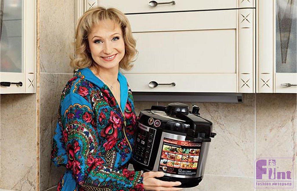 Актриса очень любит готовить, поэтому нередко балует своих близких аппетитными блюдами. Кухонный гарнитур молочного цвета изготовлен по эскизам самой Ольги. Тёмная столешница выполнена из искусственного камня и прекрасно гармонирует с гарнитуром. В комнате есть свои секреты. К примеру, за одной из картин имеется шкафчик, где хранится кухонная утварь. На кухне у Ольги много комнатных растений. На подоконнике актриса выращивает лимонное дерево, которое периодически приносит ароматные плоды.