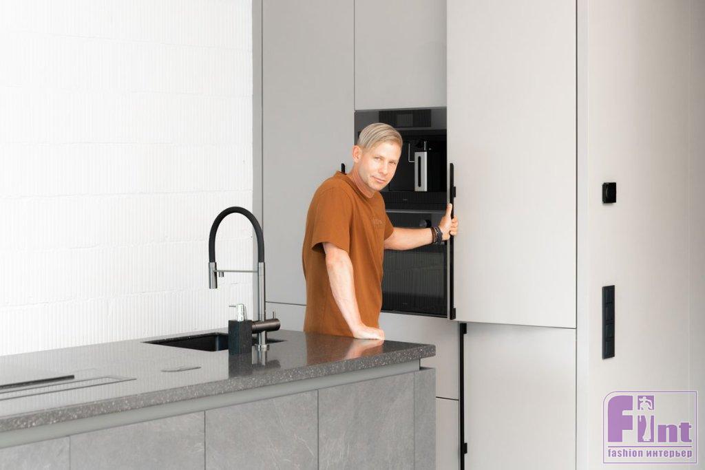 Результат превзошел все ожидания Мити Фомина. «Кухня-гостиная – мое любимое место в этой квартире, – поделился певец. – Дизайн мебели полностью отражает моё представление о домашнем уюте. Так как пространство объединённое, площадь под кухню ограничена, да и не так много времени я провожу на ней. Поэтому важно было учесть необходимое, при этом скрыть детали кухонного быта за стильным интерьером. Мне кажется, производителям мебели и дизайнерам  это удалось на 100 %. Чётко замерили, быстро выполнили, использовали экологичные материалы и естественные природные цвета. Получилась кухня-мечта!»