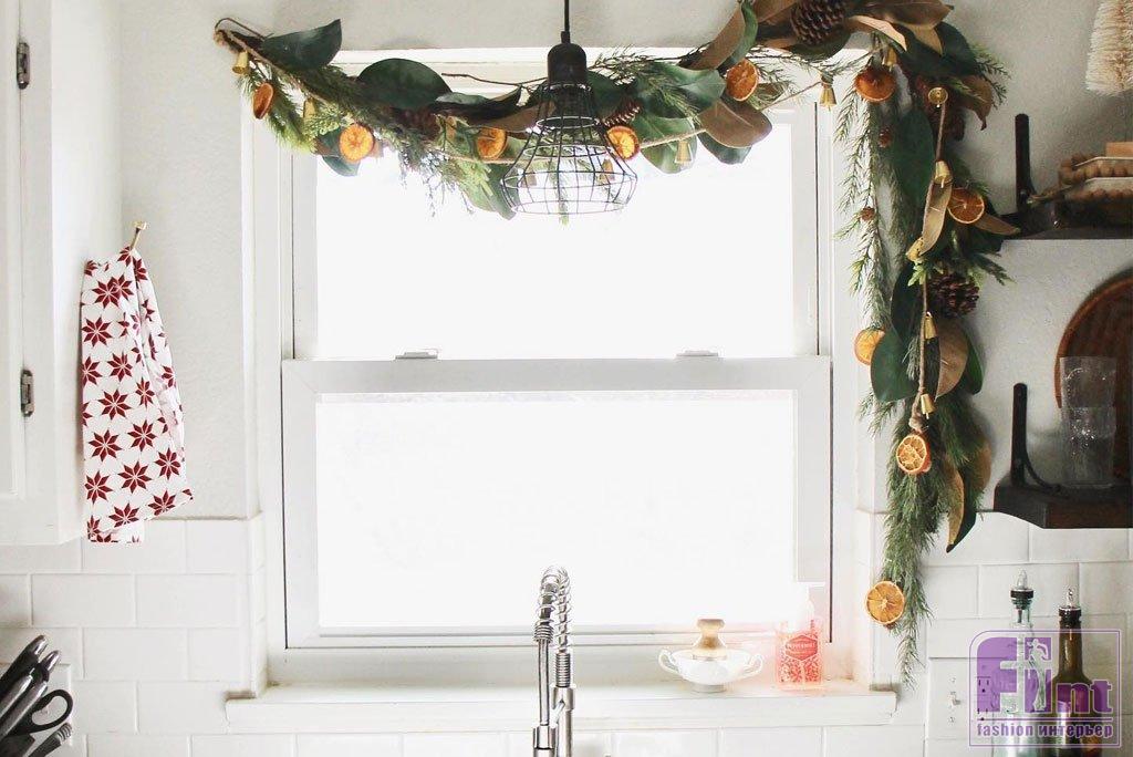Декорируйте еловыми ветками оконный проём, дверь или шкафы. Красиво выглядит хвоя, украшенная сушёными дольками цитрусовых, снежинками или шишками. Еловые гирлянды часто используют для тематического украшения дома к Новому году. Если же вы не хотите ассоциации с этим праздником в другие зимние месяцы, просто не украшайте гирлянды на манер новогодней ёлки. Хвою с другим декором или вообще без него можно спокойно использовать в качестве декора всю зиму.