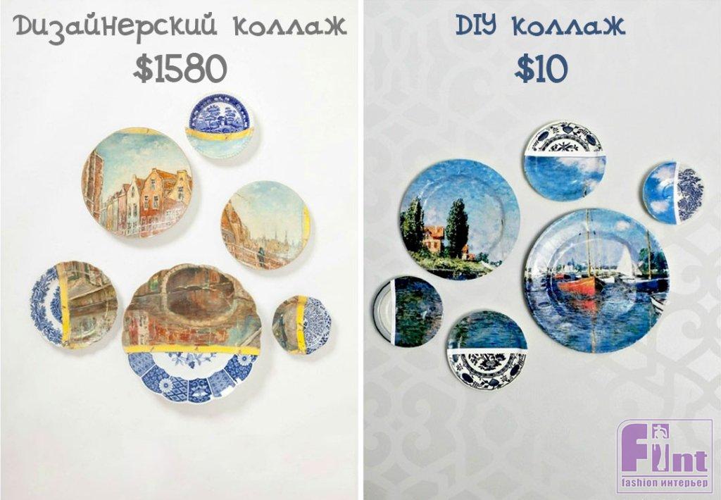 Особенно интересно в интерьере смотрятся не просто единичные тарелки, а целые коллажи. Некоторые дизайнерские компании даже предлагают за баснословные деньги такие комплекты тарелок, вместе составляющих единое масштабное панно. Цена таких комплектов может доходить до нескольких тысяч долларов! Мы же нашли очень простой и бюджетный способ создать такой восхитительный коллаж из декоративных тарелок своими руками!