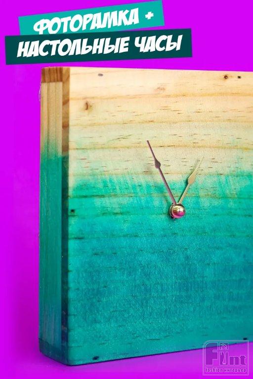Деревянные настольные часы с эффектом омбре и окошком для фото