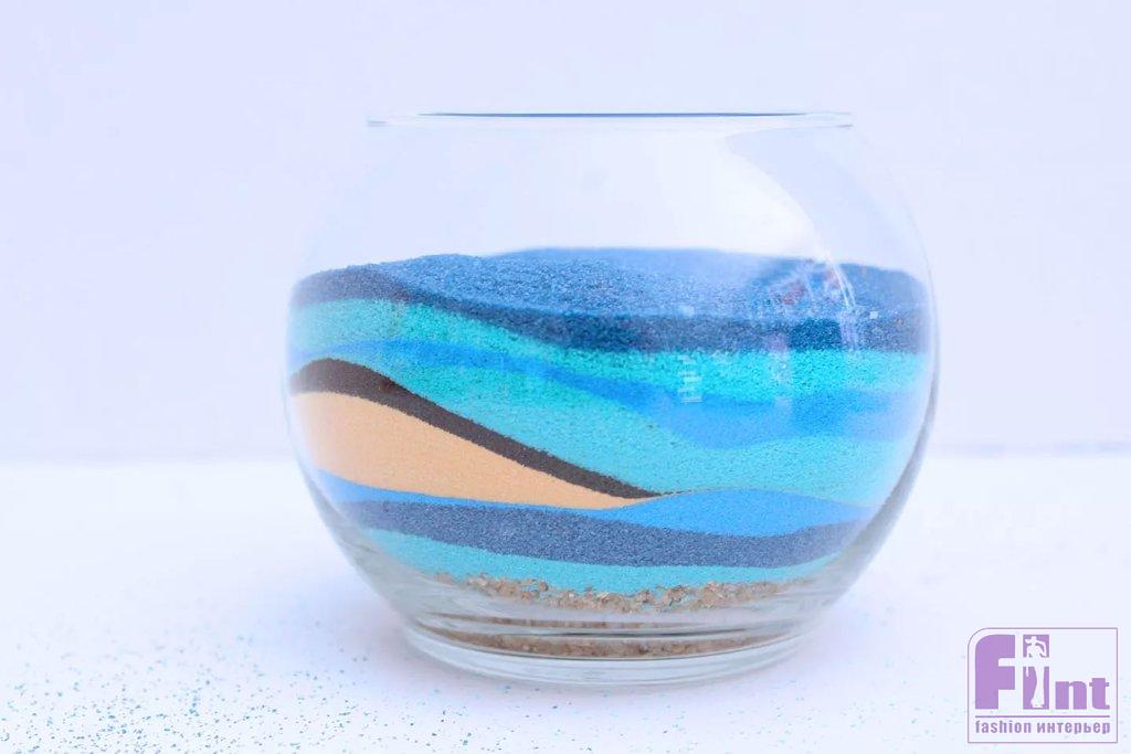 Выберите сосуд из тонкого прозрачного стекла, который по высоте примерно равен ширине. Сосуд должен быть достаточно глубоким, чтобы вместить несколько слоёв песка плюс растения.
