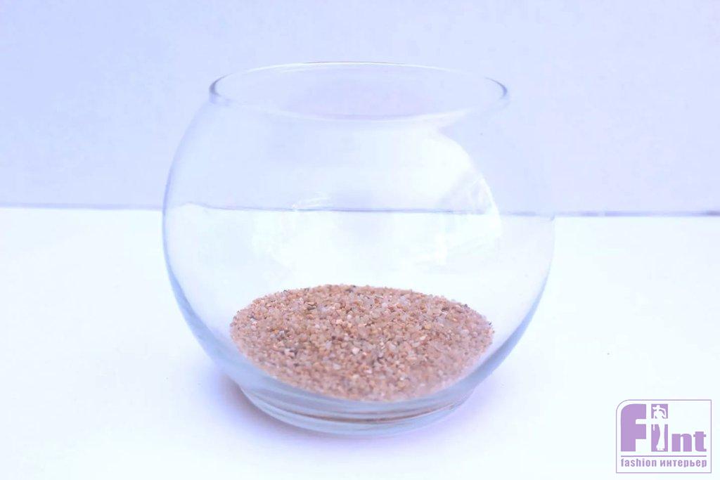 Выберите сосуд из тонкого прозрачного стекла, который по высоте примерно равен ширине. Сосуд должен быть достаточно глубоким, чтобы вместить несколько слоёв песка плюс растения.