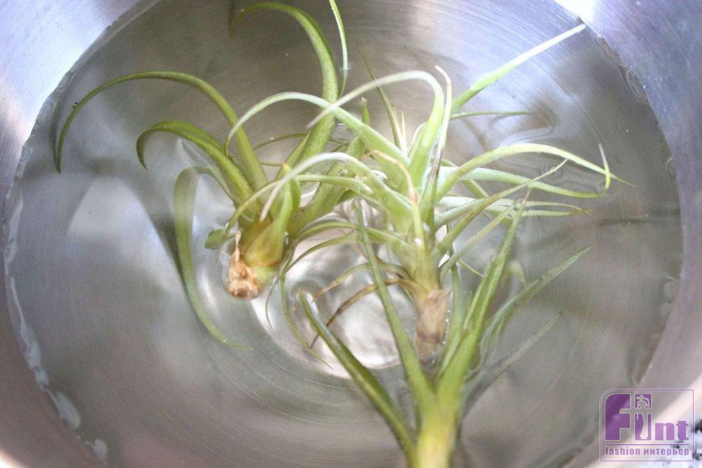Для нашего подарка мы выдрали растения тилландсии. Это растения, которым для жизни не нужны корни. Когда вы покупаете их в магазине, они, возможно, некоторое время не были увлажнены, поэтому погрузите их в воду примерно на 20 минут. Дайте им высохнуть на бумажном полотенце около часа, чтобы впиталась лишняя влага.