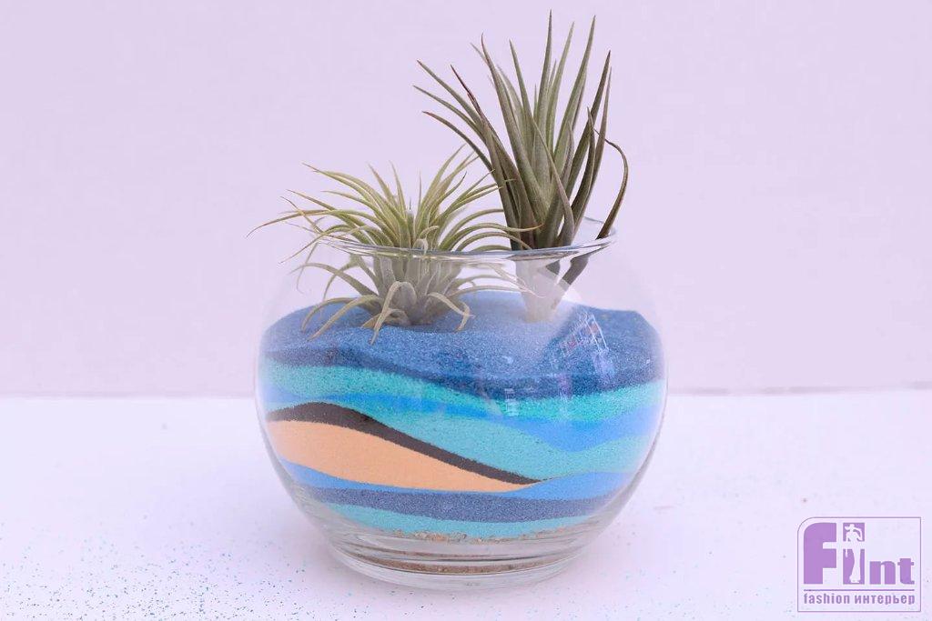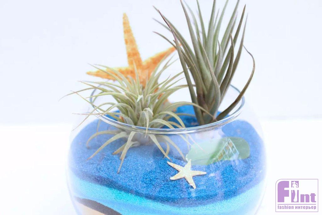Морские звёзды небольшого размера, красивые ракушки или камни вокруг тилландсий завершат ваш дизайн подарка.