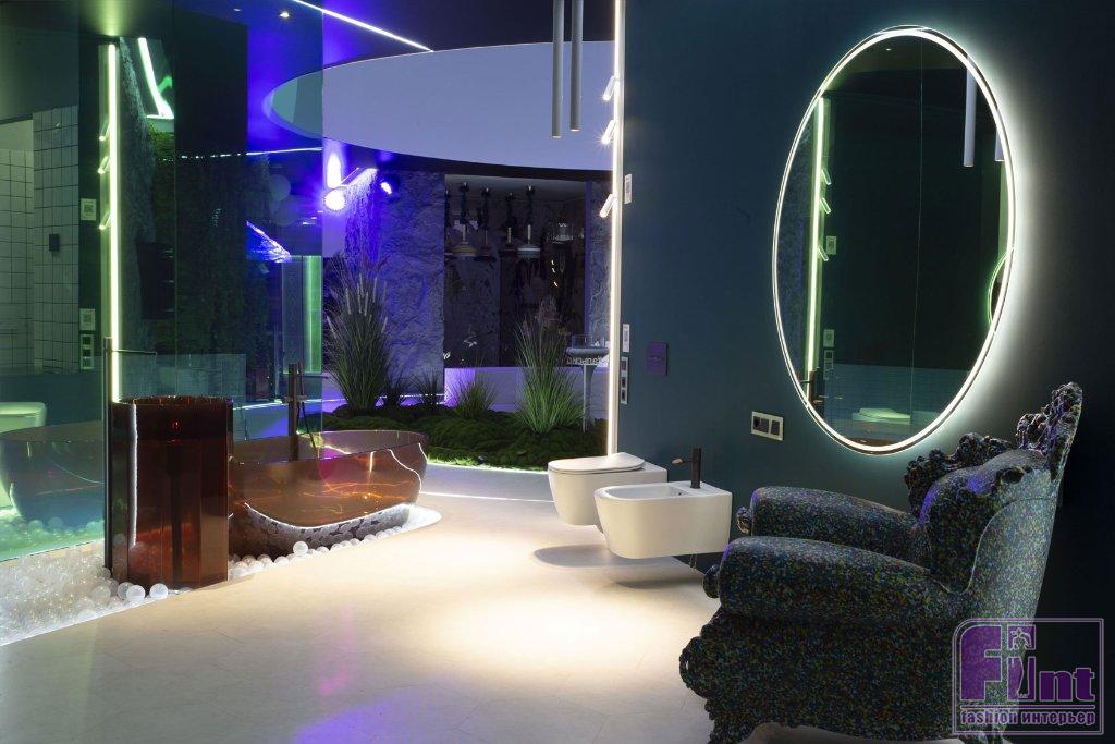 «Я очень люблю проектировать интерьерные стенды, потому что тут нет необходимости сдерживать себя привычными и понятными решениями. В тренд-зоне мне хотелось показать новые архитектурные решения в интерьере и новые сочетания. Мы привыкли, что лепнина это про что-то классическое. Специально для стенда мы придумали и воплотили совершенно новые раскладки архитектурного декора. Причем мне было важно не просто придумать оригинальное решение только для выставки, но и показать, как лепнина может работать в современном дизайне, в реальных жилых или общественных проектах. Диагонали раскладки коллекции декора Lines тут дополнены диагоналями стульев Magis от Константина Грчича. Мне показалось, что такое нестандартное сочетание будет тут очень уместно», — отметил Виктор Дембовский.