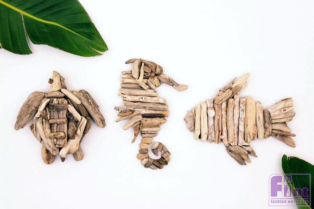 Учитывая морское происхождение плавника, вполне обоснованным представляется превращение его в представителей животного мира, обитающих в водной среде. Независимо от того, создадите ли вы рыбу, морского конька или черепаху, вы получите огромное наслаждение от творчества и украсите свой дом необычным настенным декором.