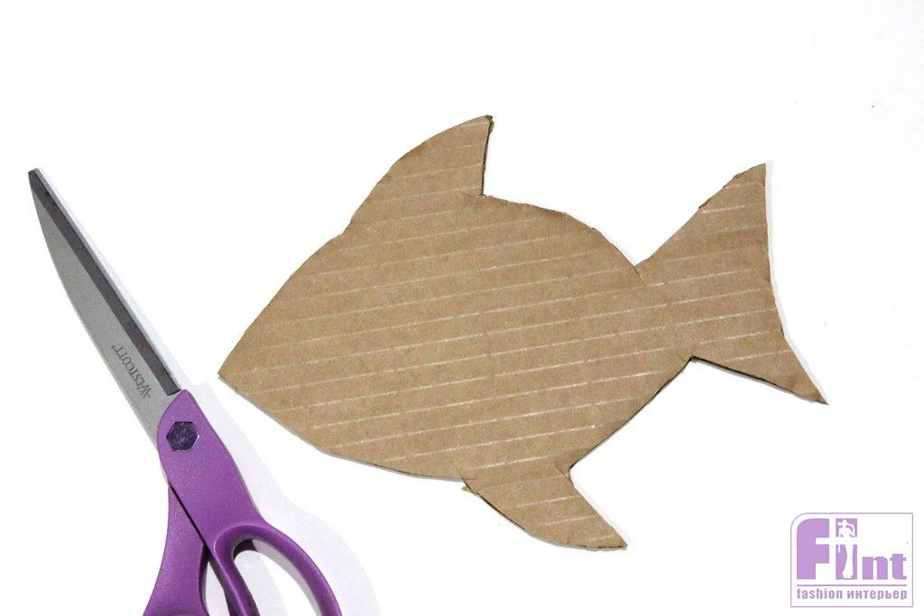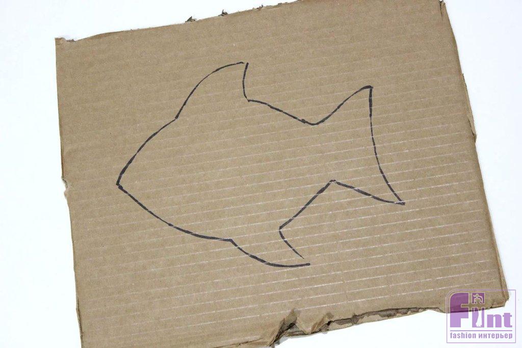 Шаг 1. Вырежьте шаблон рыбы из картона.