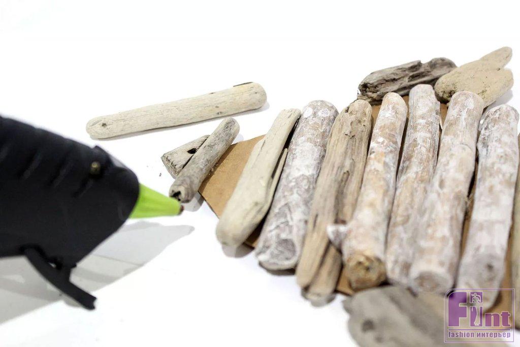 Шаг 2. Разложите кусочки дерева по контуру рыбы.