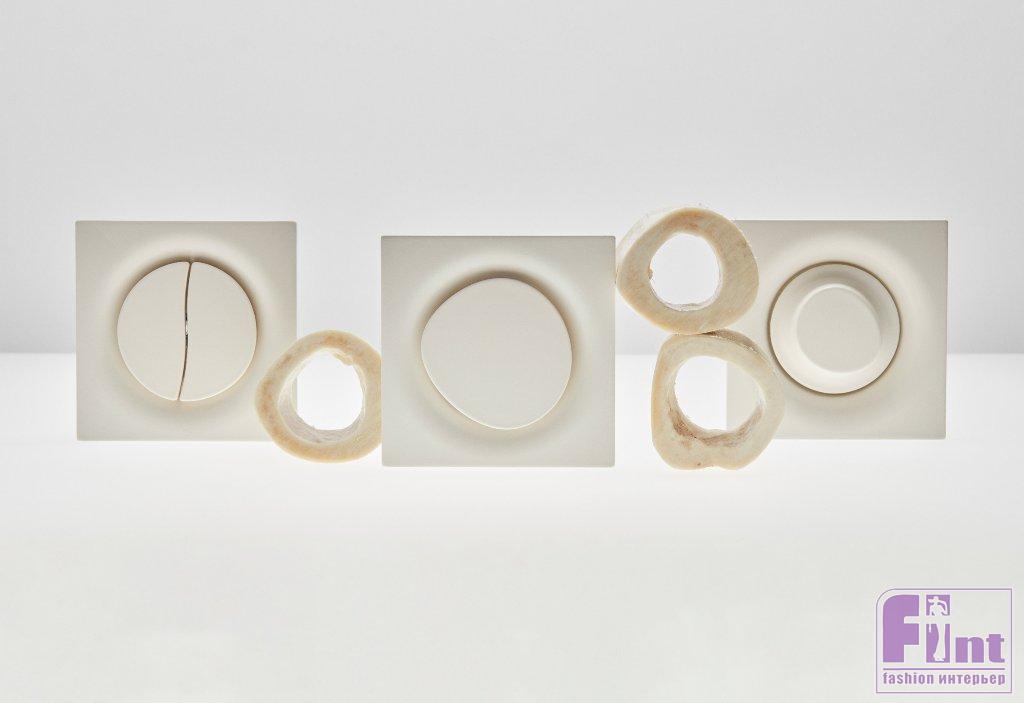 Отходы бычьих костей из мясной промышленности были измельчены в порошок и превращены в коллекцию выключателей света и электрических розеток выпускником Университета искусства и дизайна ÉCAL Сухайбом Ганми. Дизайнер в рамках своей дипломной работы создал целый спектр электроустановочных изделий под общим названием Elos.
