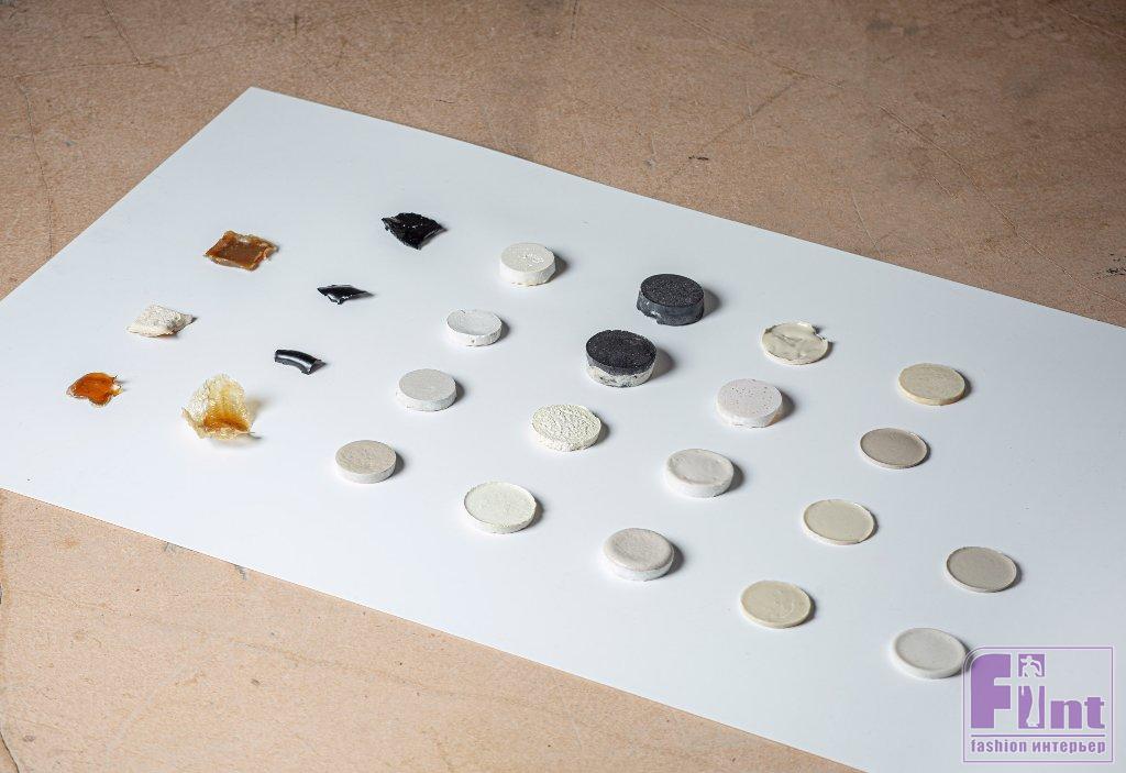 Ганми добыл костный порошок для своей коллекции Elos с одного из этих предприятий и смешал его с био-связующим веществом. В рамках своих исследований дизайнер экспериментировал с несколькими различными связующими, включая биорезины и различные клеи, изготовленные с использованием бычьих нервов и костного коллагена.