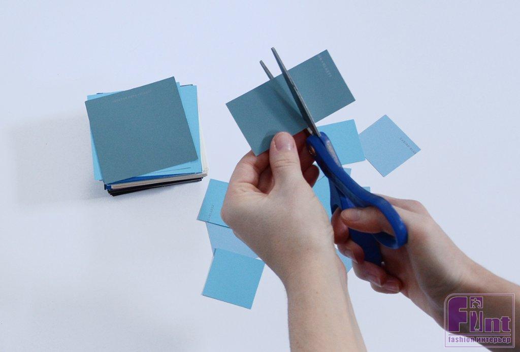 Посещая магазины строительных и отделочных материалов, вы наверняка замечали бесплатные цветные листочки, представляющие цветовую палитру для колеровки различных интерьерных и фасадных красок. Иногда эти листочки бывают сгруппированы в небольшие колеровочные веера и блоки, которые можно беспрепятственно забрать себе домой. Такие образцы могут стать прекрасным материалом для самых разнообразных DIY проектов, об одном из которых мы сегодня расскажем.