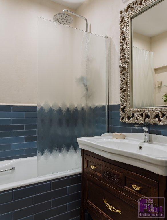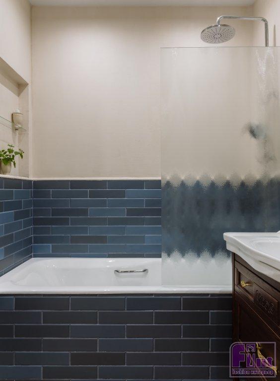 В санузлах на полу керамогранит небольшого формата 25×25 см, до середины стен выложена стильная плитка формата «metro», а остальная часть отделана микроцементом. Благодаря этому приему удалось создать не просто санузлы, а тёплые по ощущениям комнаты, без холодного керамогранита.