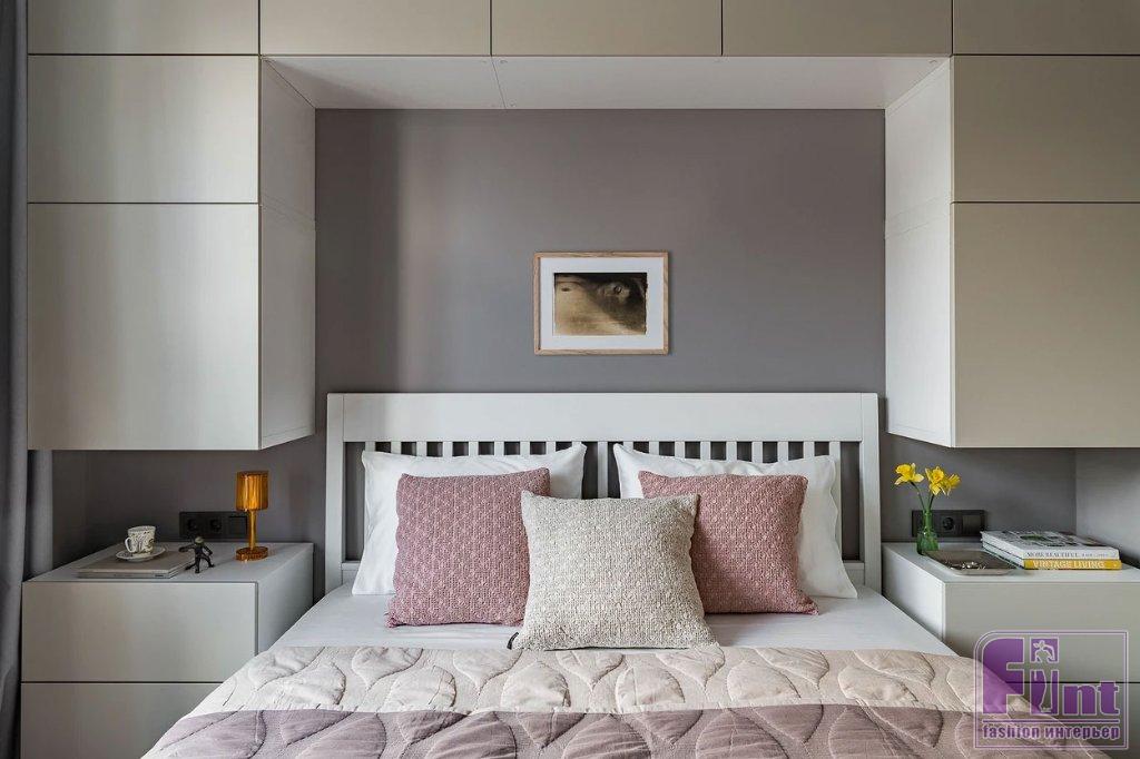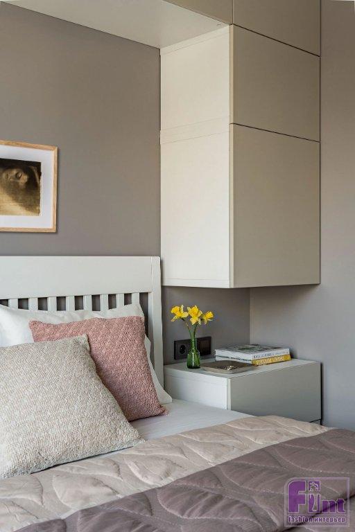 Главную систему хранения организовали в большой комнате — это отдельная гардеробная. Там есть место не только для одежды, но также для хозяйственных принадлежностей и дорожных чемоданов. В прихожей спланировали вместительный шкаф для вещей, в коридоре — ещё один встроенный шкаф. В спальне хозяйки задействовали место вокруг кровати — так удалось вписать систему хранения, но не загромоздить пространство.