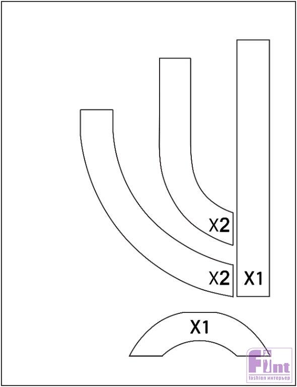 Увеличьте шаблон до нужного вам размера. Распечатав шаблон для деталей светильника на плотной бумаге, вырежьте элементы. Перенесите трафареты деталей на вашу доску.