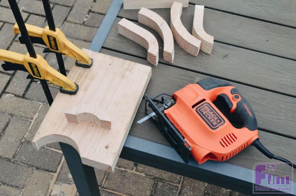 Вырежьте изогнутые детали светильника с помощью электрического лобзика.