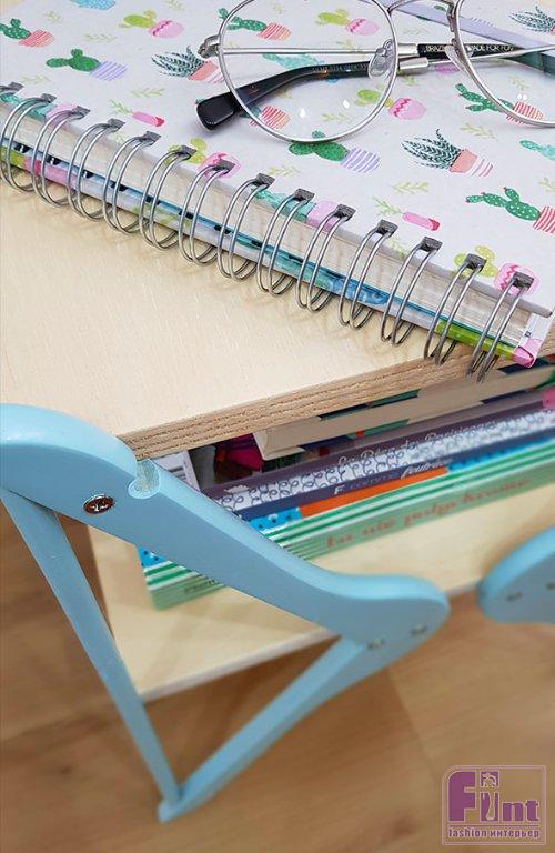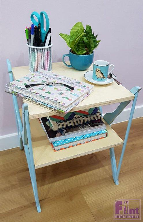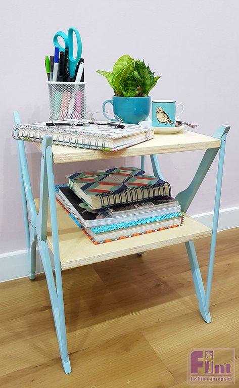 Безусловно, такое крепление не предполагает, что на столик будут устанавливаться тяжёлые предметы. Но для обычного журнального столика или прикроватной тумбы такого крепления будет вполне достаточно. Кстати, вы можете окрасить и фанерные полки, оставленные нами в натуральном цвете, и выбрать любой цвет для вешалок, который бы наилучшим образом подходил к Вашему интерьеру.