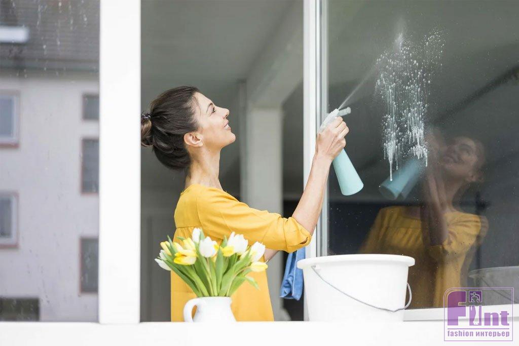 Рано утром или ближе к вечеру, когда солнце не светит прямо в стёкла. При ярком свете вы не увидите все пятна, а вода на стекле будет высыхать слишком быстро. Так что пасмурные дни — лучшее время для уборки. Не забывайте про температуру воздуха за окном! При температурах ниже 15 градусов мыть стёкла будет труднее. Дождитесь, когда на улице будет 17-19 градусов, и приступайте к очистке стёкол. Это правило отлично знакомо автомобилистам: пока салон автомобиля не прогреется хотя бы до 20 градусов, стеклоочистители плохо вытирают лобовое стекло, и на нём остаются разводы и пятна. Как только стекло нагревается, оно отлично очищается от грязи.