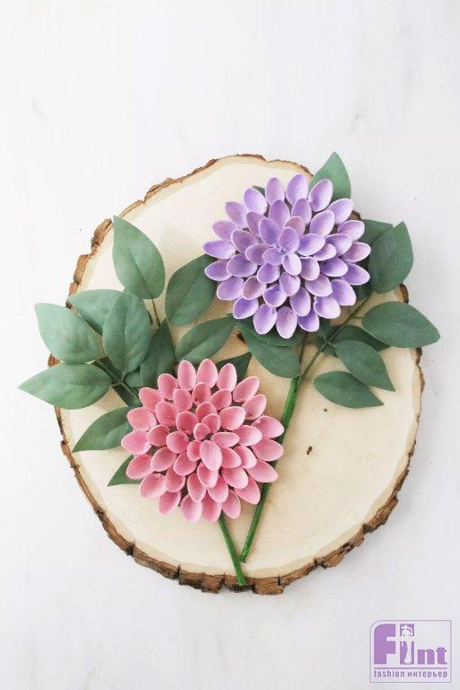 Используя горячий клей, приклейте цветы из фисташковой скорлупы и искусственные листья на выбранную вами поверхность. Ваш проект домашнего декора своими руками готов!