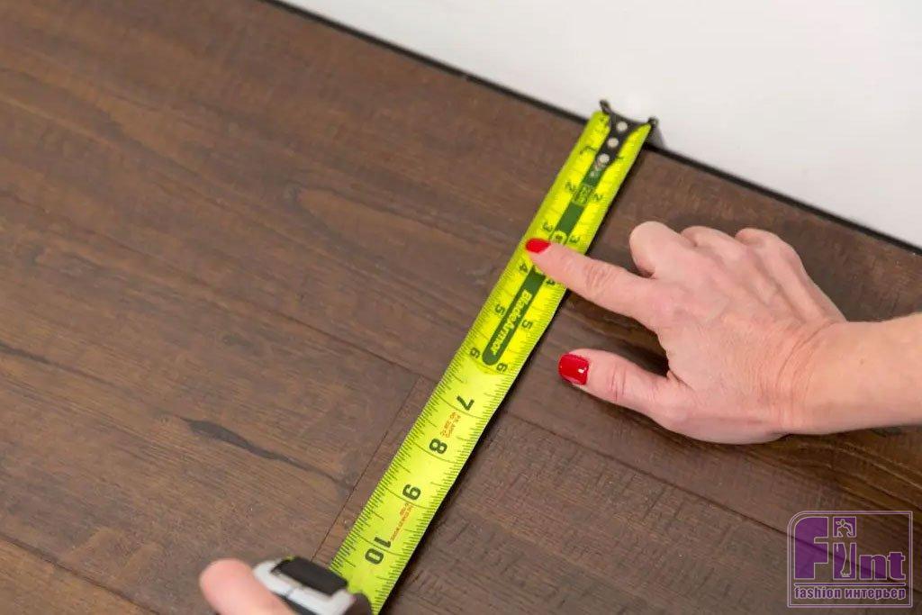 Правильный технологический зазор для большинства помещений составляет около 1 см. Чуть больше нужно сделать зазор, если ламинат упирается в трубы отопления, а также во влажных помещениях и комнатах большой площади.