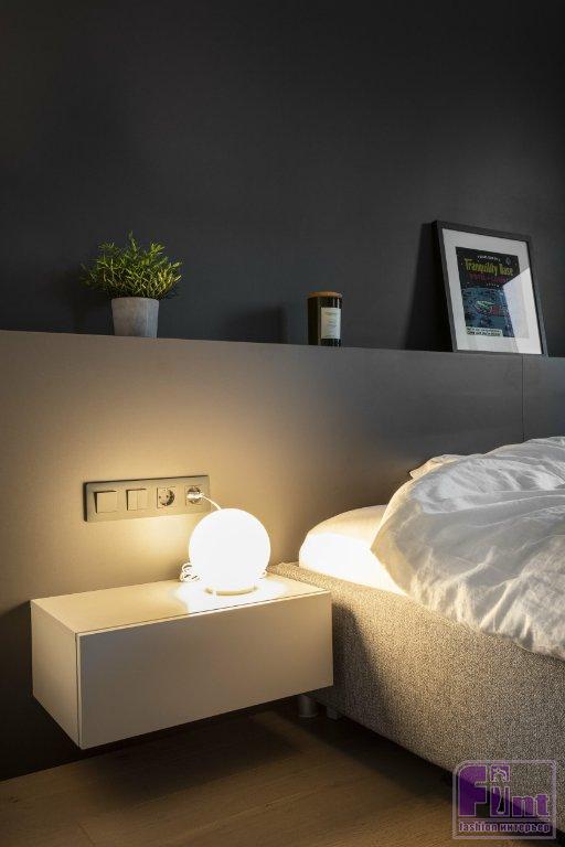 «Освещение в квартире делится на несколько уровней: общее, функциональное локальное и декоративное», — рассказывает Екатерина. Общий сценарий решён треками (один модуль в кухне-прихожей, второй — в спальне), гипсовыми потолочными светильниками в гостиной и спальне и встроенными «точками» в ванной комнате. Функциональное освещение — подсветка рабочей поверхности на кухне, подвесы над столом и подсветка зеркала в ванной комнате. Декоративный свет — подсветка потолка у окон, душевой, настольная лампа у кровати и настенный светильник на балконе.