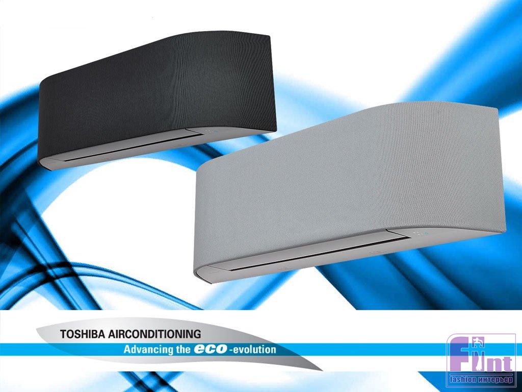 Кондиционер Haori от компании Toshiba — пример универсального кондиционера для любого интерьера. Уникальный тканевый чехол позволяет с лёгкостью менять расцветку этой климатической техники и освобождает от лишних забот при выборе элементов внутренней отделки. На выбор доступно несколько цветов чехлов: в базовой комплектации идут светло- и тёмно-серый. Но можно заказать яркие оттенки или уникальный дизайн чехла с типом ткани и принтом.