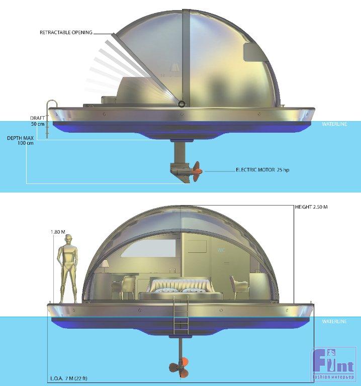 Тщательно продуманный интерьер этих плавающих гостиничных номеров включает в себя небольшую кухню, оснащённую всем необходимым для отдыха, компактную туалетную комнату и трансформируемую спальню-студию.