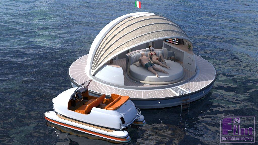 Постоянно расширяя свою коллекцию инновационных концепций плавсредств, знаменитый итальянский дизайнер Пьерпаоло Лаццарини представил свою новую разработку, получившую имя Pearlsuite. Pearlsuite - это оригинальный плавучий блок, напоминающий жемчужину, способный совершить революцию на рынке приморских объектов размещения. Pearlsuite имеет диаметр 7 метро, что позволяет получить внутреннюю полезную площадь гостиничного номера в 22 квадратных метра, а также небольшую внешнюю палубу. Концепция ориентирована как на существующие, так и на будущие пляжные курорты, предоставляя им возможность расширить количество номеров в течение нескольких недель, с нулевым углеродным следом, нулевой инфраструктурой и при довольно бюджетной стоимости реализации.