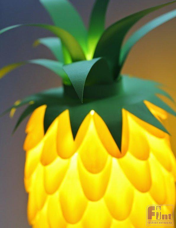Наша настольная лампа в виде сочного и яркого ананаса готова! Удивительно, что эта лампа одинаково потрясающе выглядит в выключенном и во включённом состоянии, освещая интерьер мягким жёлтым цветом с оттенками зелени.