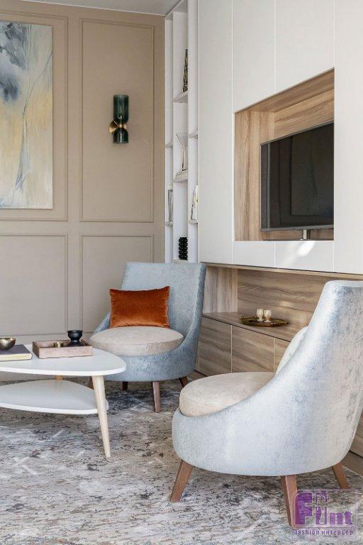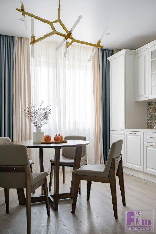 Дизайнер Надия Кисельникова из Челябинска реализовала комфортный интерьер квартиры в своём родном городе, используя пастельную гамму и яркие акценты. Владельцы этой двухкомнатной квартиры в Челябинске — взрослая семейная пара. Оба уже на пенсии. Они обратились к дизайнеру Надие Кисельниковой с просьбой оформить интерьер с комфортной спальней, продуманными системами хранения, местом для сна гостей и возможностью смотреть телевизор на кухне. Также было важно уместить в санузле и душевую, и ванну.
