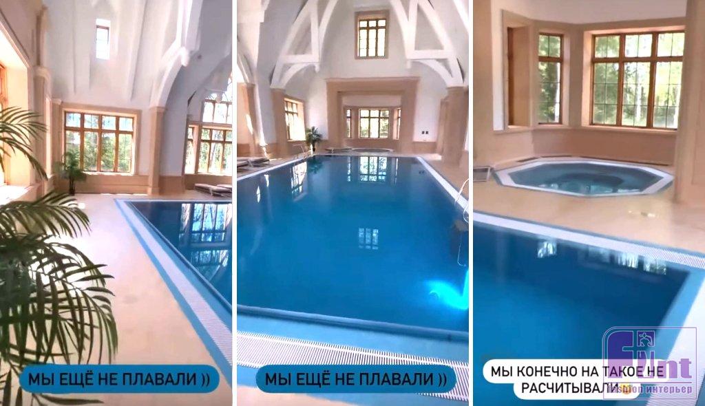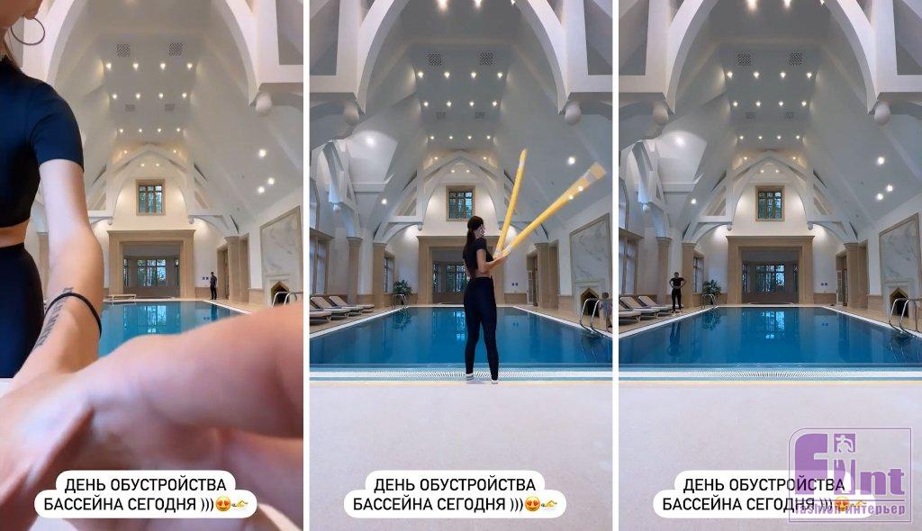 «Я буду вам показывать комнаты, которые мы уже разобрали. Вот такой вот! Ну красота же, да?» — комментировала Самойлова, демонстрируя огромный кабинет размером с однушку. Конечно же, в доме Оксаны и Джигана есть и бассейн — это отдельное помещение с акцентным потолком, точечным светом, большими окнами. Главное, что есть в нём, — доступ к воде в любое время года и лежаки, на которых можно «почилить» после тренировки.
