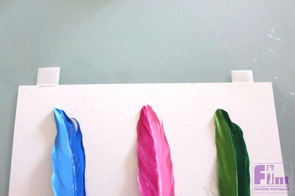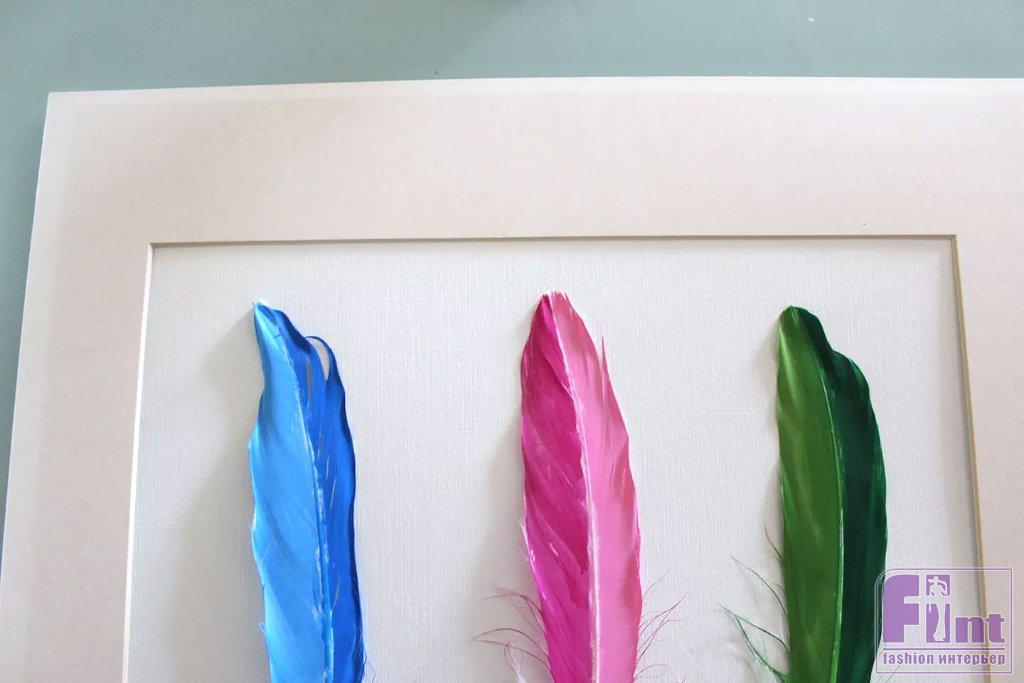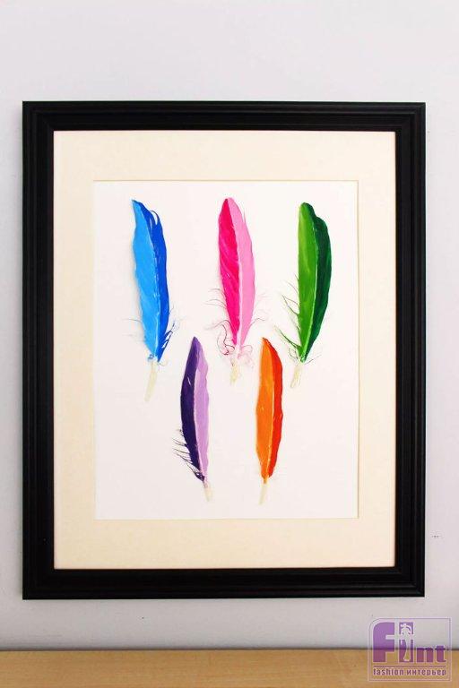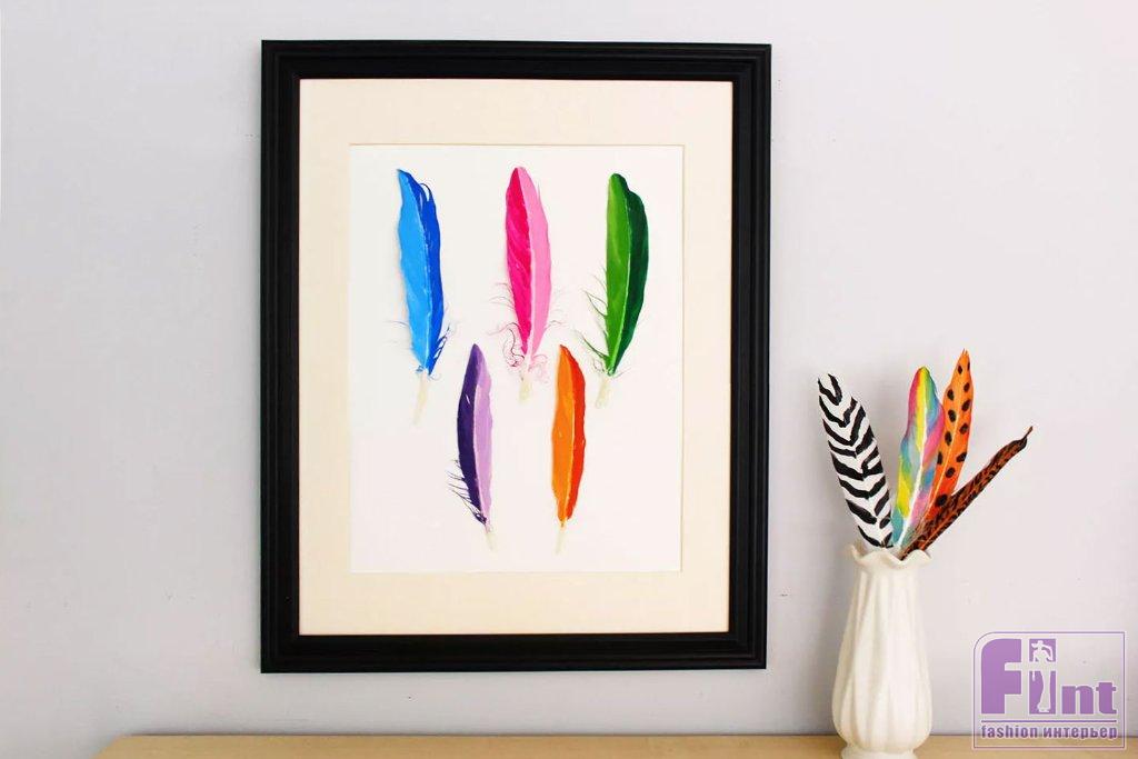 Разместив раскрашенные своими руками перья на бумаге, и вставив их в рамку для фото, вы создадите привлекательное настенное произведение искусства, которое будет выглядеть так, как будто оно было куплено в художественной галерее или в лучшем магазине дизайнерских аксессуаров.