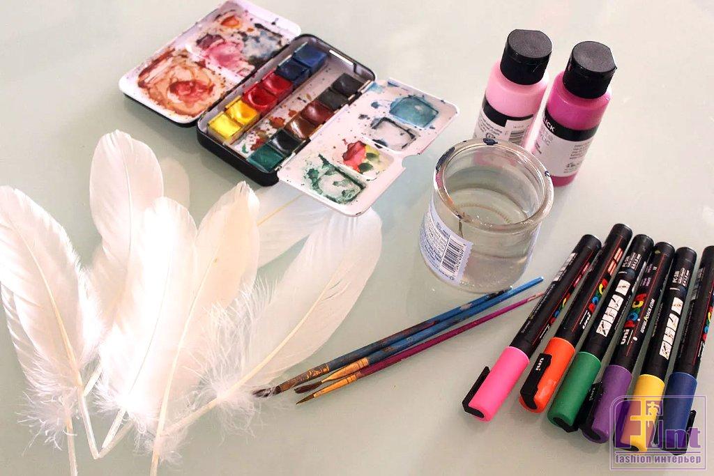 Для более плотного окрашивания натуральных перьев прекрасно подойдут акриловые краски. Чтобы продемонстрировать простоту использования акрила, мы создадим двухцветный эффект на перьях, который придаст им шикарный, современный вид.