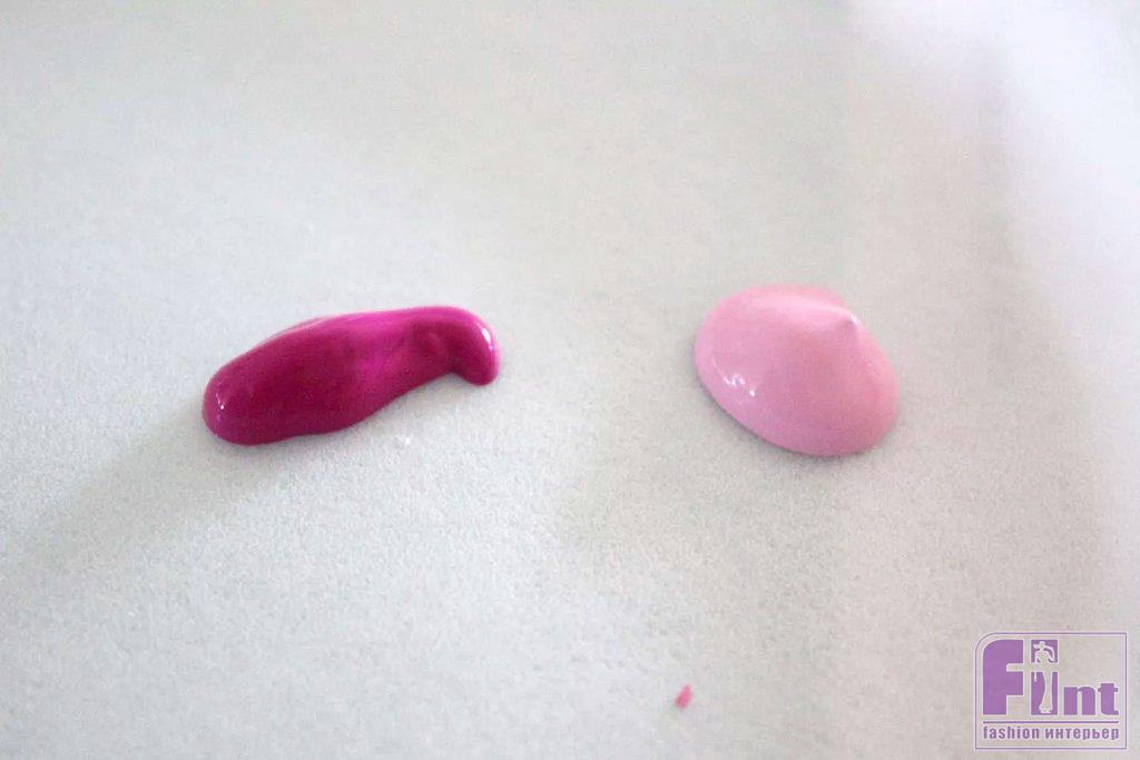 Начните с двух цветов краски, которые являются разными оттенками одного и того же цвета. Здесь у нас есть светло-розовый и темно-розовый.