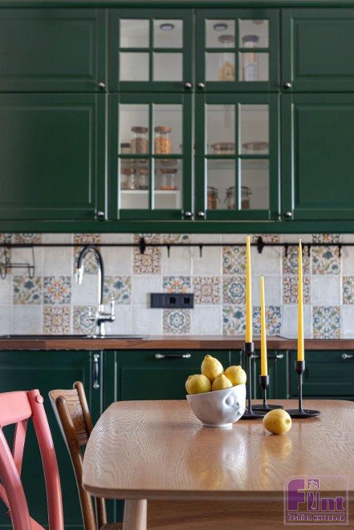 Хозяева хотели яркий интерьер. И, для того чтобы реализовать это пожелание, проще всего использовать краску. Она моющаяся, что весьма практично, тем более с учётом будущего пополнения в семье. В детской добавили обои с ненавязчивым абстрактным рисунком. Для отделки пола в жилых зонах использовали паркетную и инженерную доску, а вот «мокрые» — прихожая, кухня — оформлены плиткой, из неё уложили красивый керамический «ковёр».