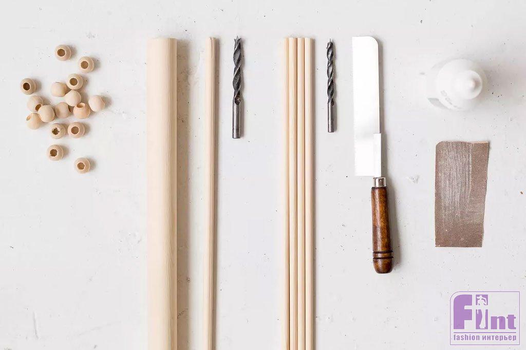 Поместите деревянную бусину поверх каждого шканта, используя клей для дерева, чтобы закрепить её на месте, если это необходимо.