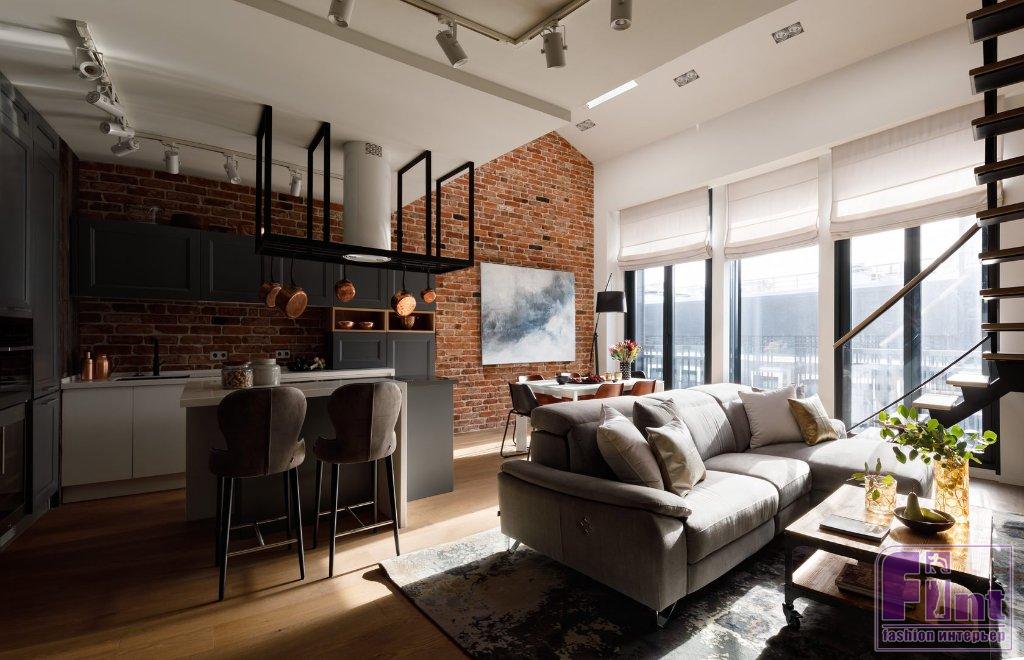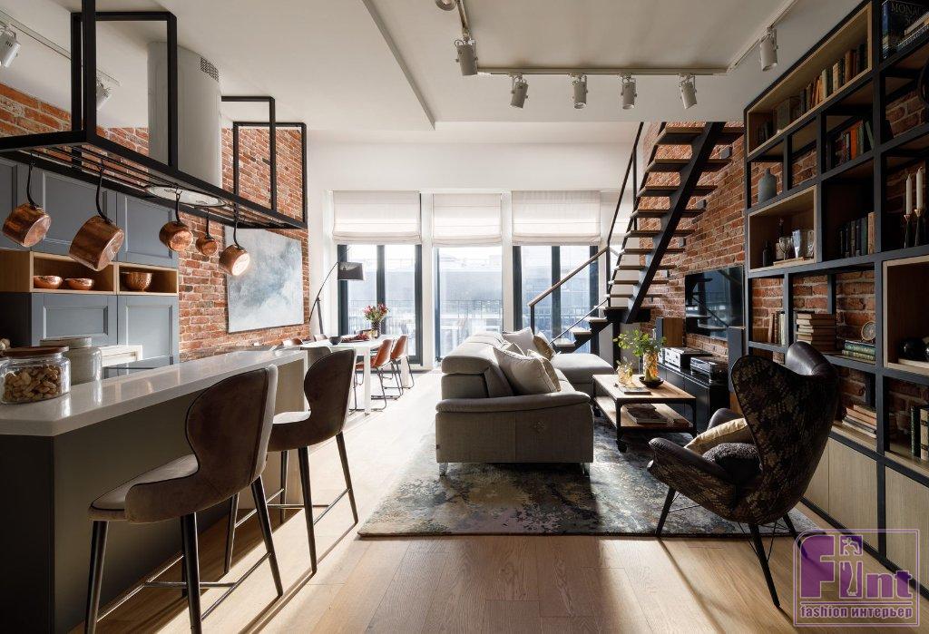 Когда дети повзрослели и разъехались по своим семьям, директор цирка на Цветном бульваре, сын легендарного Юрия Никулина Максим со своей супругой поняли, что квартира для них слишком большая и решили переехать. В качестве подходящего жилья, они выбрали двухэтажный лофт площадью 90 кв. м на последнем этаже в новом жилом комплексе в Москве, который студия In House Design оформила в стильном индустриальном формате.