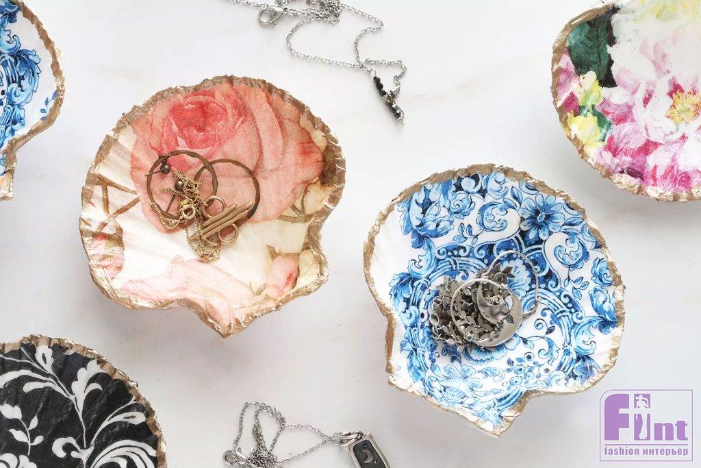 Когда вы видите морские раковины на берегу моря, что приходит вам на ум? Если вы любитель рукоделия, вы, вероятно, думаете исключительно о том, что можно из них сделать для украшения интерьера вашего дома! Действительно, ракушки идеально подходят для поделок в ЭКО стиле, и к тому же они очень универсальны в качестве исходного сырья. В последнее время одним из особенно модных и актуальных способов рукоделия с ракушками является их украшение в технике декупажа. Созданные в этой простой технике ракушки превращаются в очаровательные блюда, которые можно использовать для хранения ювелирных изделий, различных мелочей, ключей от квартиры и даже домашнего декора.