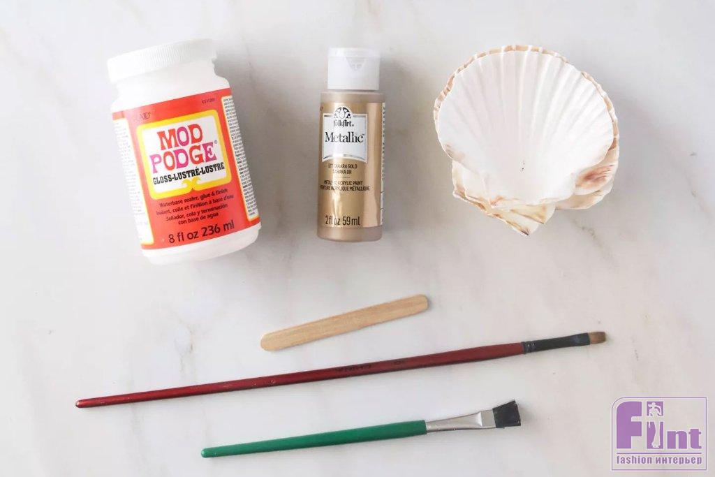 Лучший клей для поделки из ракушек зависит от вашего конкретного проекта. Для этой поделки из ракушек для декупажа вы можете использовать практически любой клей-лак для декупажа, также известный как герметик на водной основе. Любители DIY в аналогичных проектах любят использовать знаменитый Mod Podge. Но если вы хотите приклеить что-то к ракушке, вы можете использовать либо горячий клей, либо универсальный клей для рукоделия. Горячий клей может быть более подходящим, если вы хотите приклеить что-то к изогнутой поверхности. Это потому, что горячий клей схватывается быстрее, чем ремесленный клей. Если вы хотите приклеить ракушку к другому предмету, отлично подойдут как горячий клей, так и клей для рукоделия. Вы также можете использовать клей для морских раковин, который специально разработан для поделок из ракушек. Не удивляйтесь. Есть и такой вид клея. Для покраски раковины лучше всего подходит акриловая краска. По сравнению с другими красками, она с меньшей вероятностью будет скользить по раковинам.