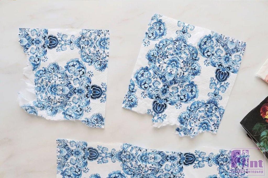 Рассмотрите дизайн салфетки и решите, какие её части вы хотели бы отобразить на ракушке. После этого аккуратно оторвите от салфетки выбранные фрагменты, которые должны быть немного больше по размеру, чем ваши ракушки. При необходимости используйте для этого ножницы.