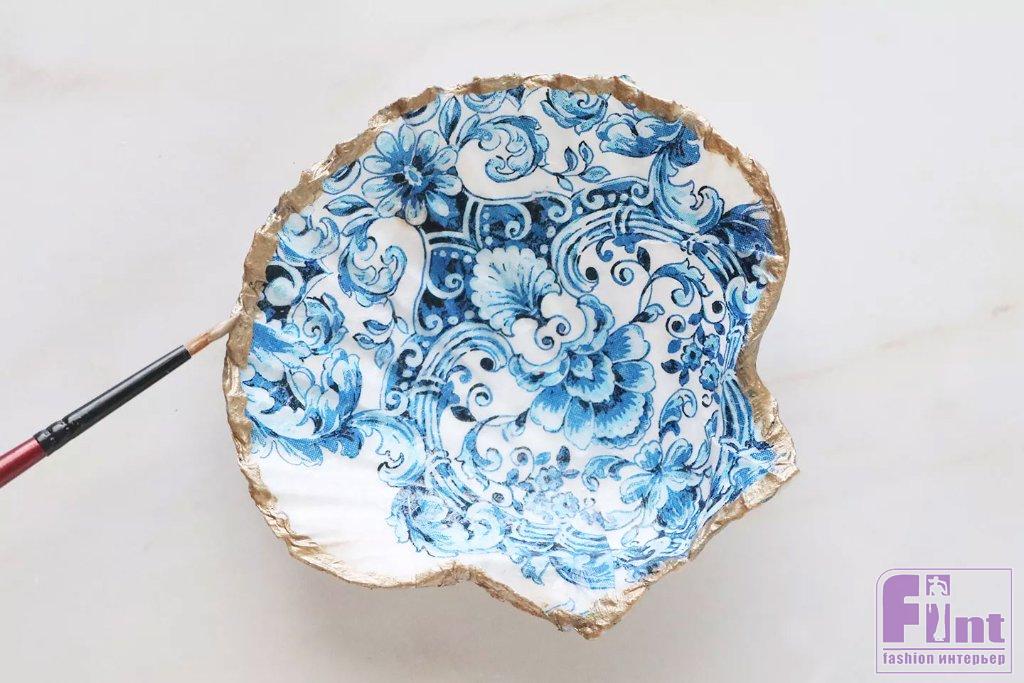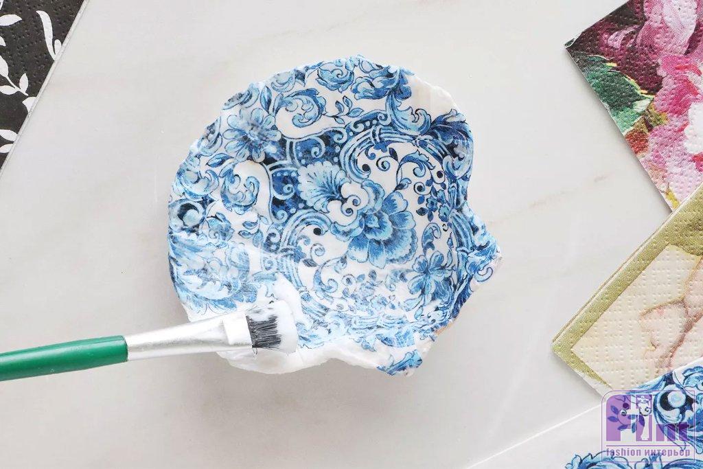 Очаровательные блюда в стиле декупаж из крупных ракушек