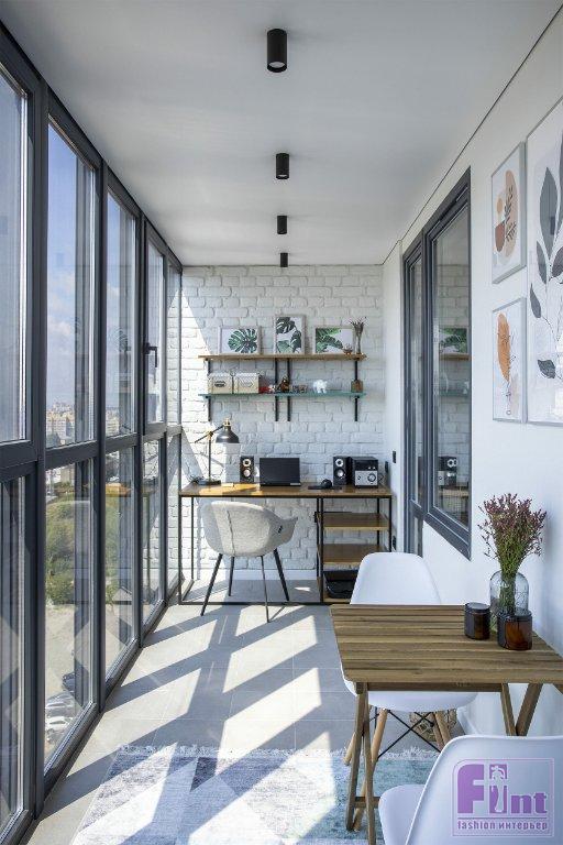 Рамы от швейных машинок Зингер, амбарная дверь на роликах, полноценное рабочее место на небольшом балконе: в этом интерьере много деталей, которые хочется разглядывать. Берите на заметку!