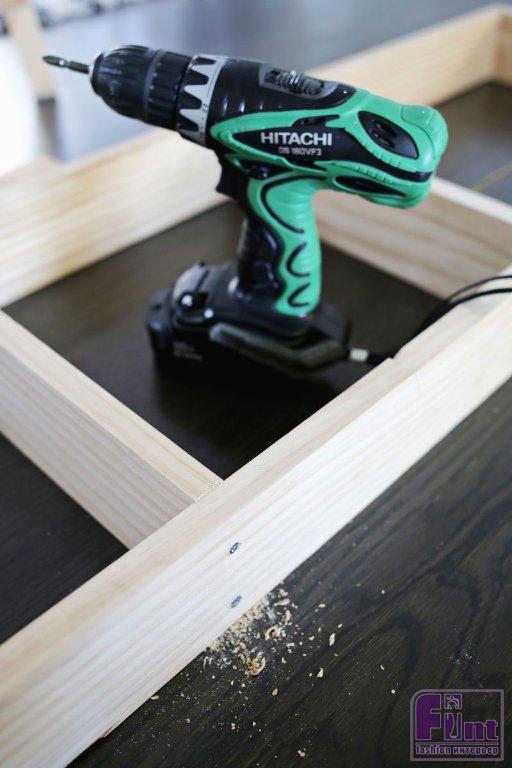 Как только доски будут обрезаны по размеру, используйте шуруповёрт и шурупы для скрепления коротких досок с боковыми длинными. Вероятно, вам захочется предварительно просверлить отверстия, если вы используете твёрдую древесину, чтобы упростить процесс и избежать растрескивания боковых деталей. Как только ваша рама будет готова, вы можете покрасить её краской в нужный вам цвет. Мы решили, что для наших белых стен идеально подойдёт рама такого же белого цвета.