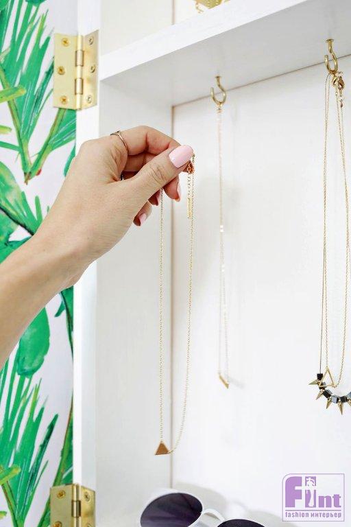 Удивительно, как мало места эта система хранения занимает на стене, и все же, когда вы открываете дверцу, внутри оказывается целый мир ваших любимых украшений и аксессуаров, спрятанных в волшебном «зазеркалье»!