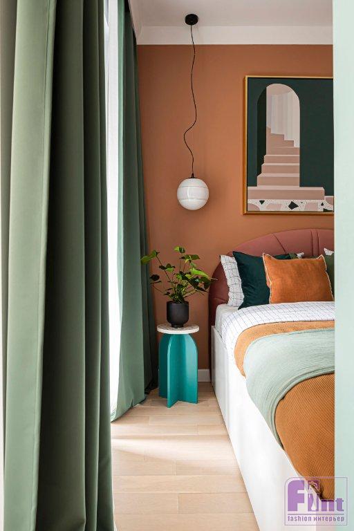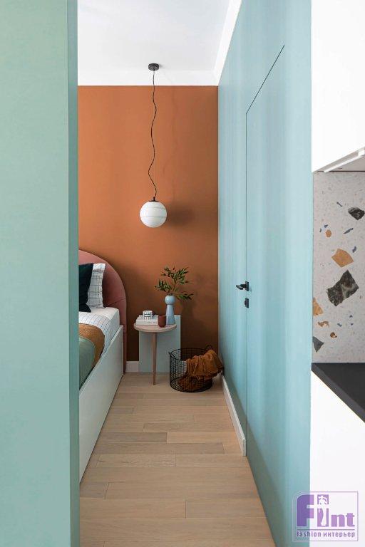 Эту квартиру-студию Света Хабеева оформила в стиле нео-мемфис. Яркий жизнерадостный интерьер предназначен для сдачи в аренду. «Это был 2019 год, тогда стиль нео-мемфис только набирал популярность. И вот на первой встрече от заказчицы я услышала, что она хочет именно его. От радости я собрала концепцию за вечер», — рассказывает дизайнер.