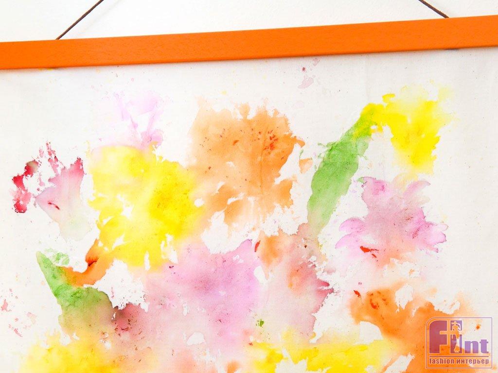 Деревянные рейки можно окрасить в любой цвет по желанию, или оставить их в естественном виде. Прикрепить ткань к рейкам можно при помощи той же клеевой ленты, или воспользовавшись универсальным клеем. Осталось закрепить на одну из реек набор для навешивания картин и повесить ваше панно на стену!