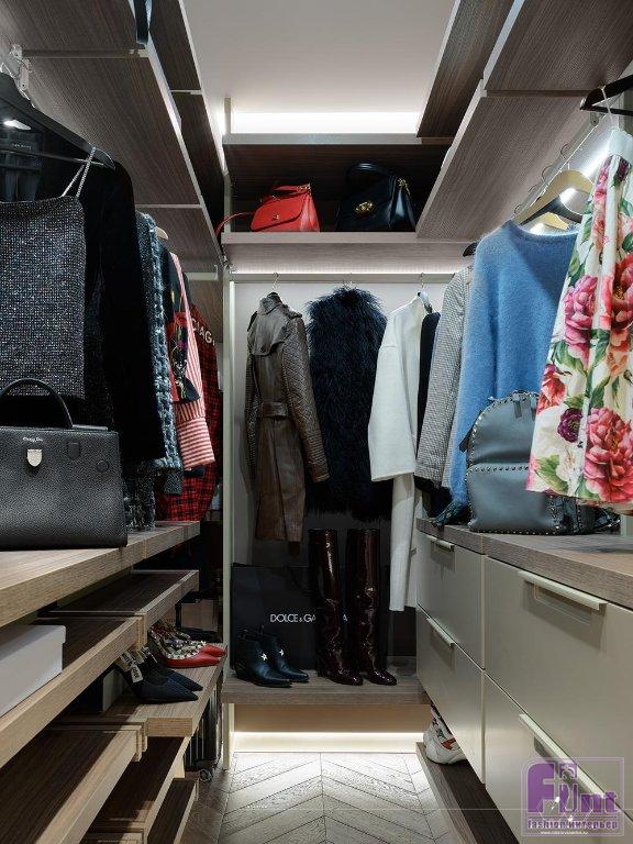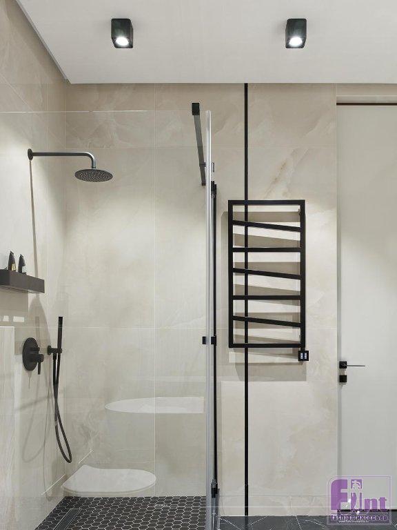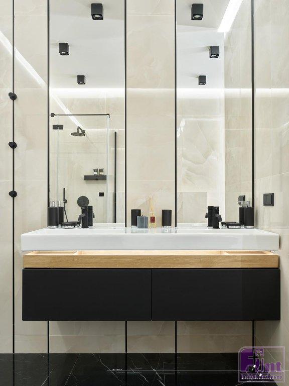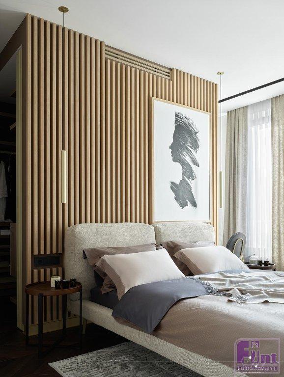 «Большое количество окон, на первый взгляд, казалось огромным плюсом, продолжает дизайнер. — Но, приступив к работе, я столкнулась с определенными ограничениями. Например, узкие простенки между окнами (50 см) усложняли комфортное разделение комнат и не оставляли места для удобных систем хранения. Необходимо было расставить приоритеты, каким помещениям будет отдана большая площадь, а каким меньшая. В результате мастер-спальня заказчицы заняла 40% квартиры, с гардеробной в 7,3 м² и ванной комнатой 8,1 м², 35% площади заняли совмещенная гостиная и кухня. А оставшуюся площадь заняли гостевая спальня, гостевой санузел и небольшая прихожая с просторным холлом в сердце квартиры».