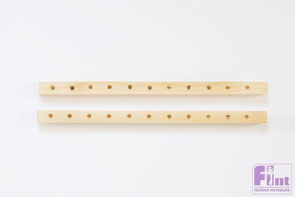 Нанесите немного клея для дерева в каждое отверстие и забейте в них ваши дюбели, чтобы в итоге получилась конструкция держателя. Готово!